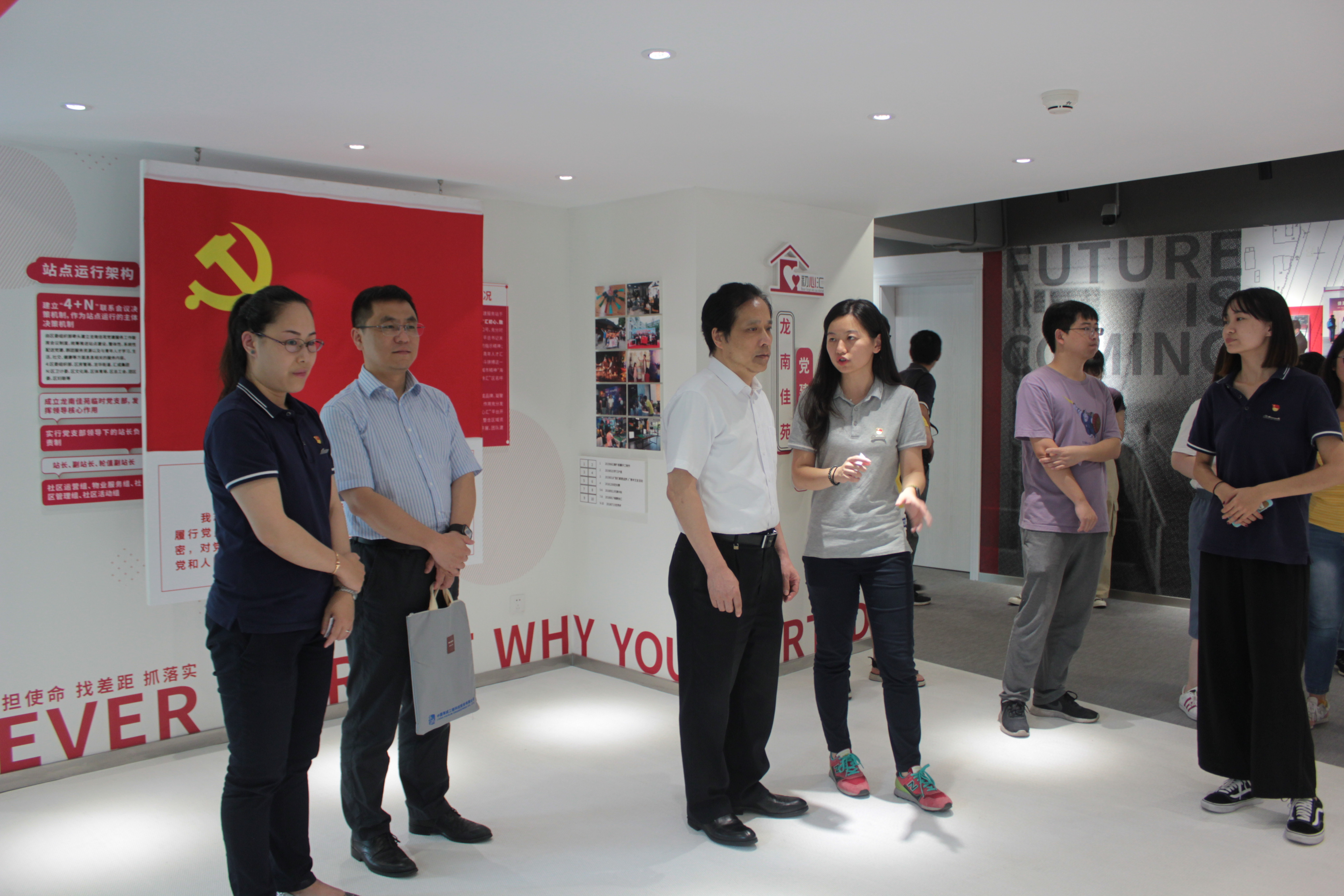 Bian Junyi and his delegation paid a visit to the Longnan Jiayuan public rental housing project (fully decorated model housing; "Chuxinhui" party building service station; miniature fire station; fitness center) in Xuhui District, Shanghai, and organized an symposium to give audience to the introduction by Shanghai Xuhui Huizhong Public Rental Housing Operation Co., Ltd. (Xuhui Huizhong for short) to information about the project and the occupancy status of employees of Haisum, having communicated and exchanged with each other in terms of the application for public rental housing, etc.