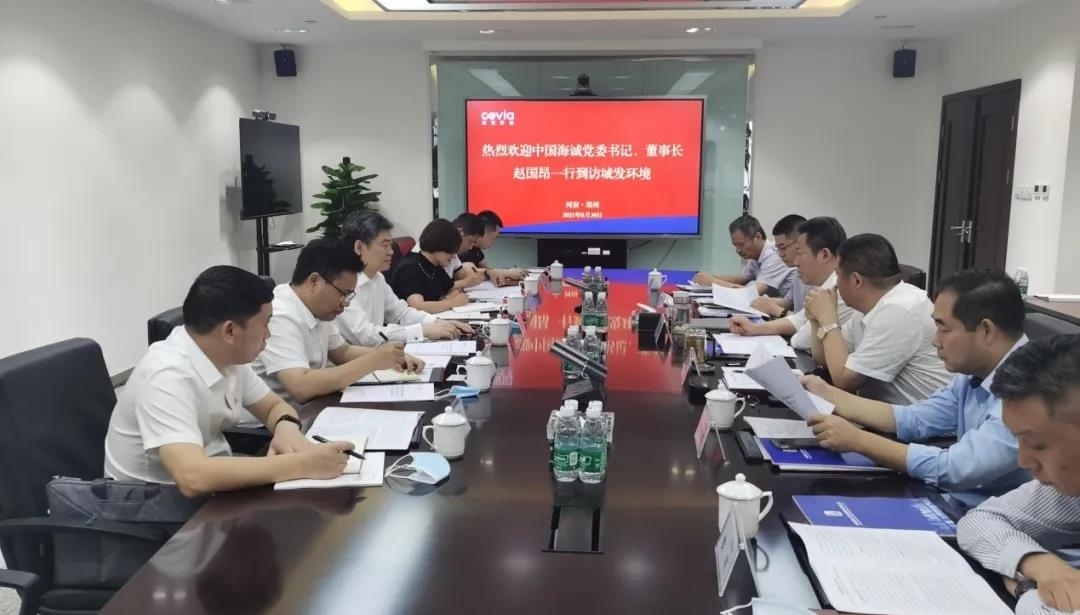 On August 30, Zhao Guoang, the Secretary of the CPC Committee and Chairman of Haisum and his delegation paid a visit to Zhengzhou, Henan, and held discussions and exchanges with Zhu Hongbing, the Secretary of the CPC Committee and Chairman of Henan City Development and Environment Co., Ltd. regarding in-depth cooperative relations and expanding cooperation fields. A consensus was reached on expanding the outcomes of cooperation.