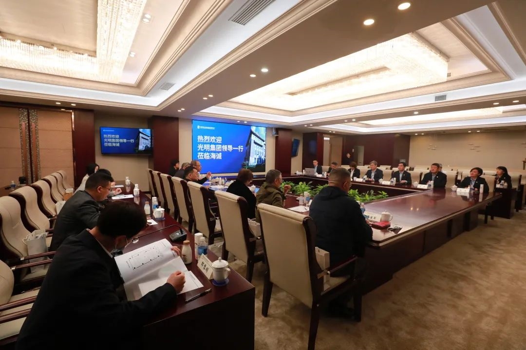 On October 31, Zhao Guo'ang, secretary of the CPC Committee and chairman of China Haisum, warmly received a delegation led by Shi Mingfang, the chairman of Bright Food Group, to have a discussion and exchange and discuss a new mode of cooperation.
