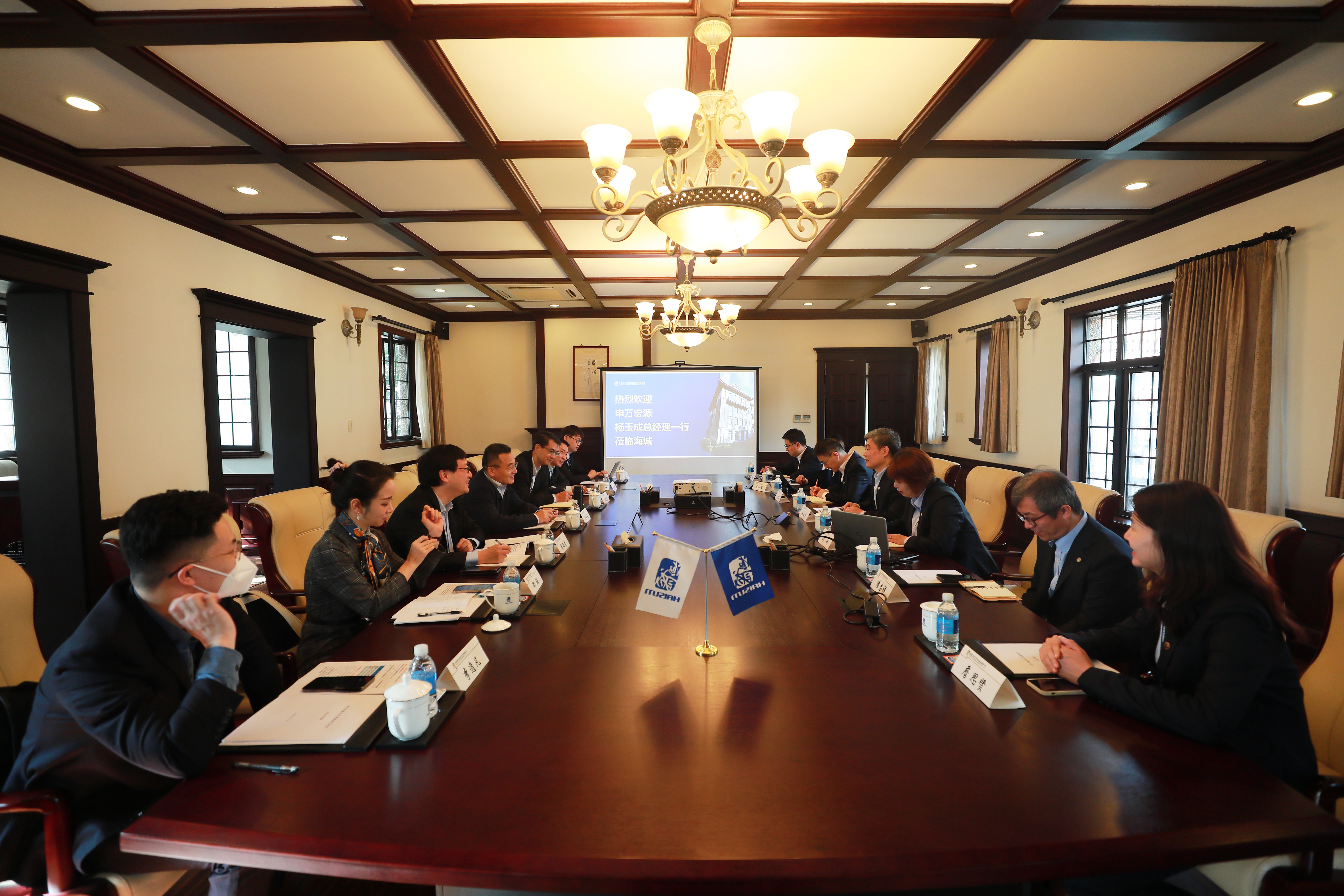 Zhao Guoang introduced a series of reform and transformation work carried out by China Haisum led by the "14th Five-Year Plan". He said that China Haisum, as a listed company, cannot develop without the support of the capital market, and he hoped that through the all-round services of and cooperation with Shenwan Hongyuan, the Company will achieve leapfrog development and continuously develop its greater market value. Zhao Guo'ang made an outlook on further deepening the cooperation between the two sides, expecting the two sides to carry out all-round cooperation and exchange in industry research, client resources sharing, business management, and Party building, etc.