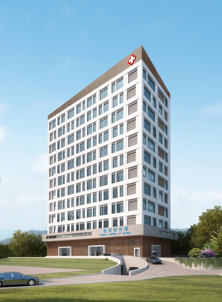該項(xiàng)目占地面積1045.64㎡,總建筑面積14171.74㎡。項(xiàng)目規(guī)劃著重于生態(tài)環(huán)境與高科技醫(yī)療建筑形象的研究,將建筑與環(huán)境景觀緊密融合,充分體現(xiàn)醫(yī)技“值得信任的高科技”的個(gè)性特點(diǎn)。該項(xiàng)目擬建場(chǎng)地為山地地形前后高差較大,消防環(huán)道坡度為11%,致使道路陡度高。為解決由此帶來(lái)的院區(qū)推床與病人行走困難問(wèn)題,使各類綜合因素配合度更高,設(shè)計(jì)團(tuán)隊(duì)經(jīng)過(guò)多次現(xiàn)場(chǎng)實(shí)地考察和多方案比對(duì)研究,最終利用高差劣勢(shì)轉(zhuǎn)成預(yù)留下沉景觀廣場(chǎng)優(yōu)勢(shì),同時(shí)使用雙首層設(shè)計(jì)手法,使背面道路可直接通過(guò)建筑內(nèi)一層與二層之間的電梯空間快速到達(dá)。