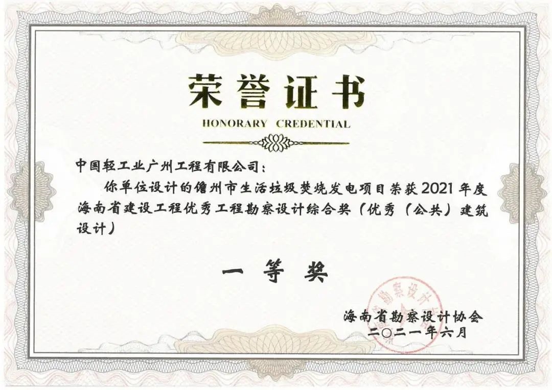近日,海南省優(yōu)秀工程勘察設(shè)計行業(yè)獎評選結(jié)果出爐,中國海誠廣州公司負責(zé)設(shè)計的“儋州市生活垃圾焚燒發(fā)電項目”榮獲海南省建設(shè)工程優(yōu)秀工程勘察設(shè)計綜合獎(優(yōu)秀(公共)建筑設(shè)計)一等獎。