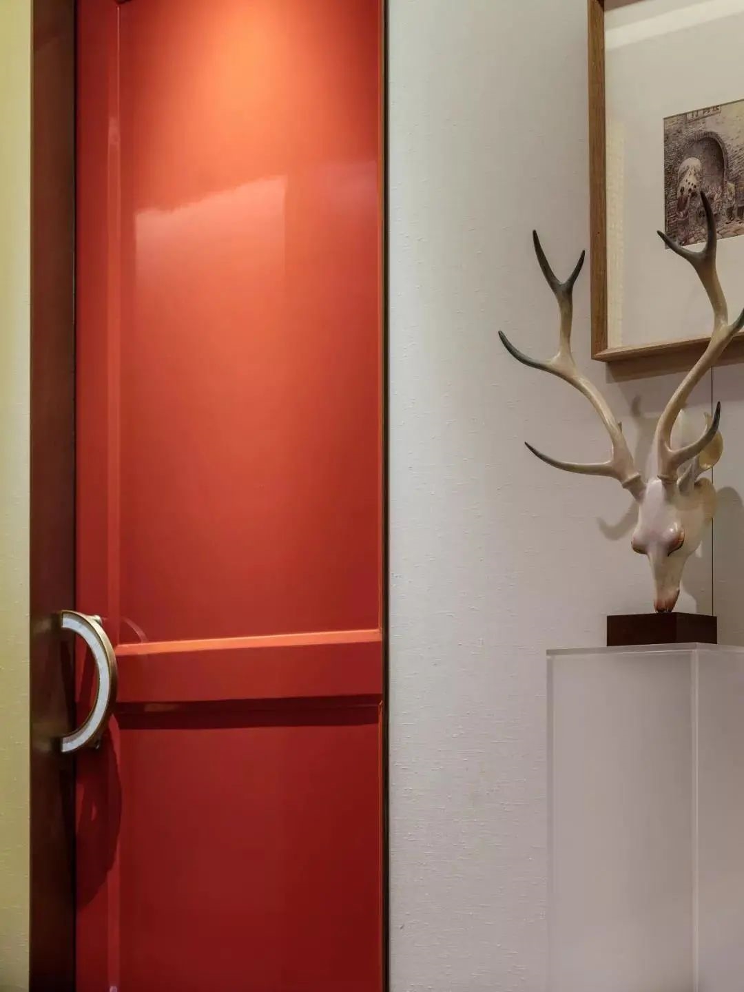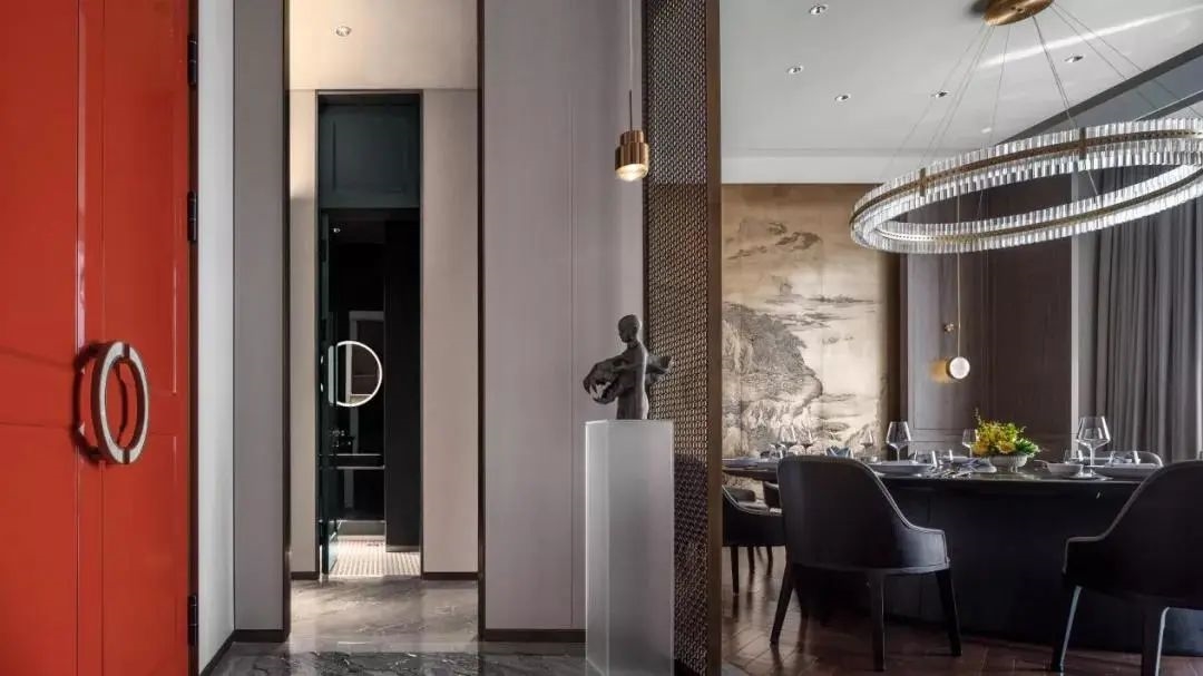 一步一景,一眼一畫(huà),隨著動(dòng)線從大堂進(jìn)入主餐廳,中國(guó)紅在餐廳暈染開(kāi)來(lái),點(diǎn)綴鑲嵌于門(mén)上,掛畫(huà)間,飾品處,在整體暖高級(jí)灰的主色調(diào)下鋪以純正的京紅反而映襯出鬧中取靜的東方之魂。