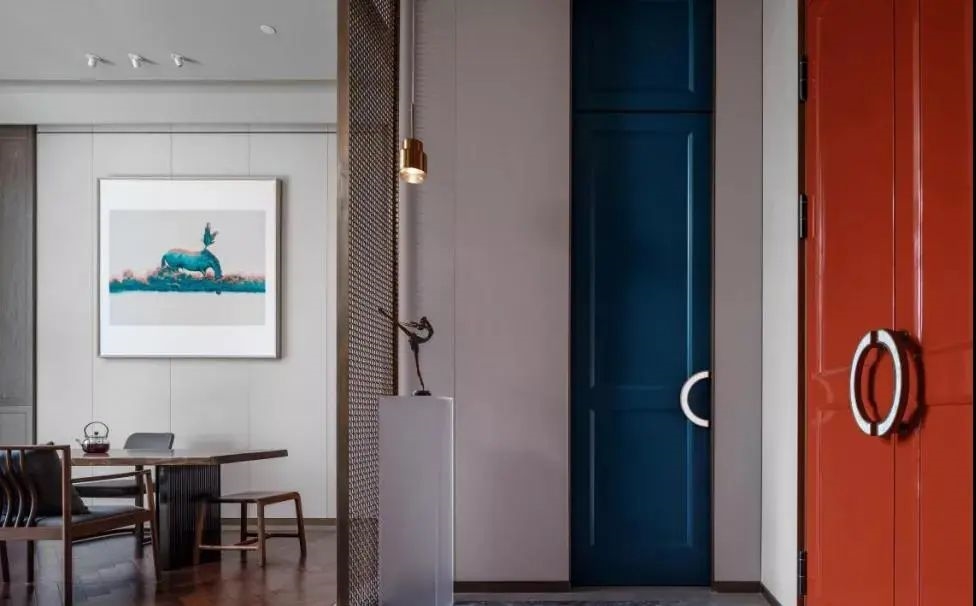 不同的空間其形式與意蘊(yùn)就會(huì)有所不同,來(lái)到走廊公區(qū),京紅色與明黃色的點(diǎn)綴在整個(gè)空間中尤為亮眼,驚艷了來(lái)此就餐的客人,并感受著帝都的文化內(nèi)涵。餐廳的包間區(qū)主要分布于二層,設(shè)計(jì)師希望為客人營(yíng)造安靜舒適的就餐私密環(huán)境。既通透又私密的金屬隔斷設(shè)計(jì)手法將兩處包間劃分兩側(cè),可分可合的滿足不同的宴會(huì)需求,遮擋后可做單獨(dú)包間使用,敞開(kāi)又可做大包間使用,原木色柜體與白凈的墻面將空間定格為靜與動(dòng)的氛圍感受,墻面搭配冷暖跳色加以裝飾,氣韻中和,寧?kù)o致遠(yuǎn)。