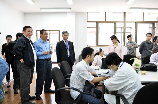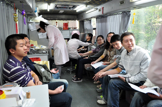 早上8:30起,報名參加獻血的員工們就紛紛來到公司5101房間體檢。9時許,第一批體檢合格的員工踏上了獻血車。公司領導胡小平、翁偉民、工會主席李農,以及各支部書記,部門領導都守候在獻血車外,陪同慰問著這些慷慨捋袖的志愿者們。
