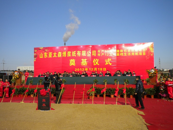 由海誠本部負責工程設計、中輕建設負責土建施工、輕鑫監(jiān)理負責監(jiān)理的山東亞太森博漿紙有限公司三期項目年產(chǎn)30萬噸液體包裝紙板項目暨年產(chǎn)12萬噸高檔生活用紙項目于2012年12月18日正式開工建設。海誠股份副總裁戚永宜作為特邀嘉賓出席了開工儀式。