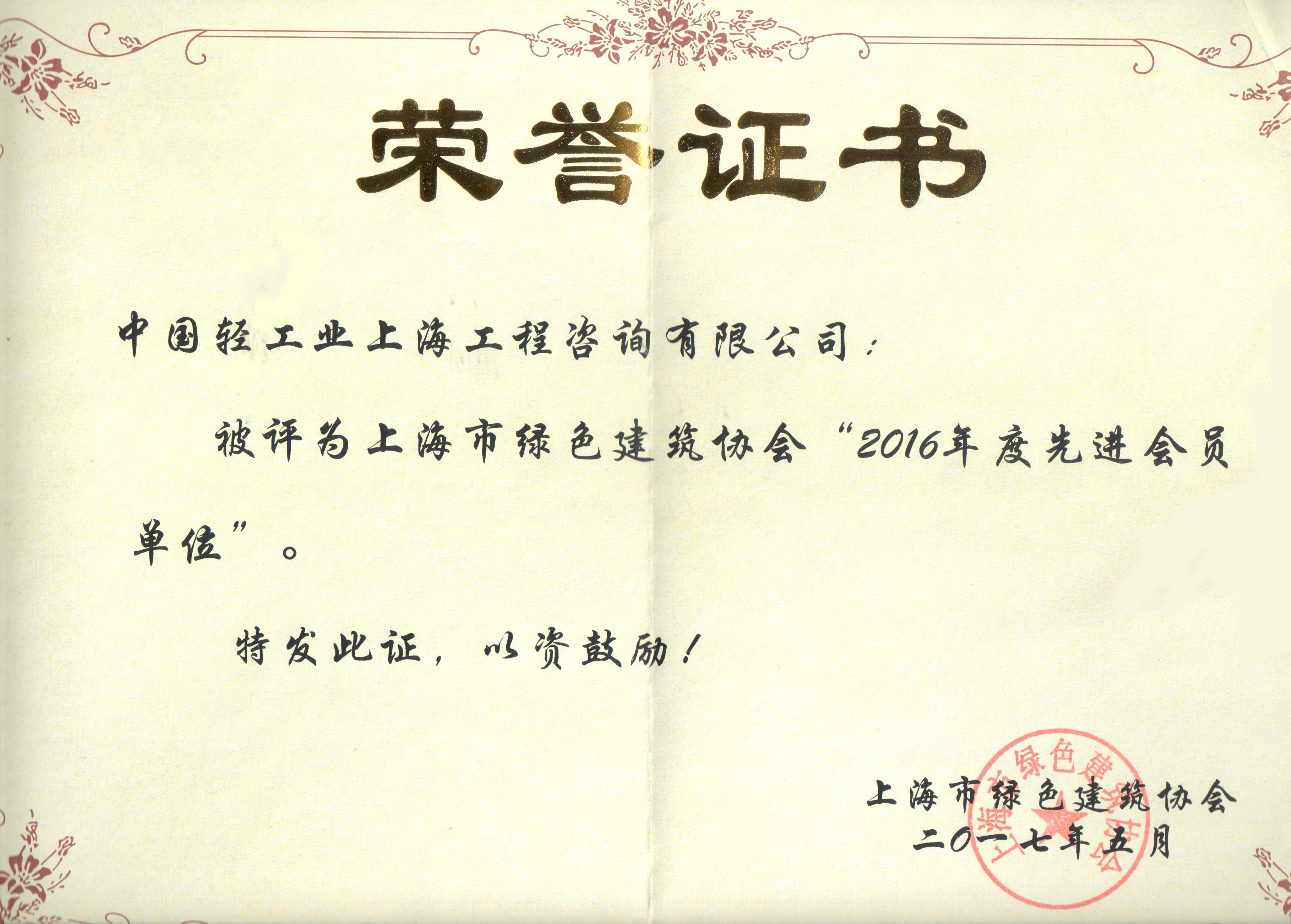 日前公司獲邀出席上海市綠色建筑協(xié)會第四屆第五次會員大會,并獲評上海市綠色建筑協(xié)會2016年度先進(jìn)會員單位。