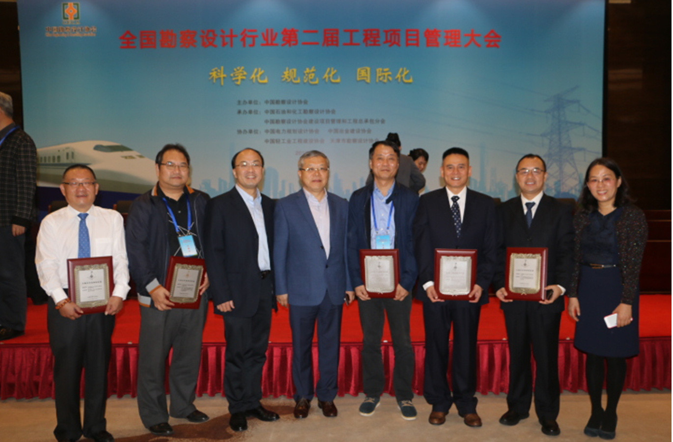 由中國勘察設(shè)計(jì)協(xié)會(huì)主辦,中國石油和化工勘察設(shè)計(jì)協(xié)會(huì)和中國勘察設(shè)計(jì)協(xié)會(huì)建設(shè)項(xiàng)目管理和工程總承包分會(huì)聯(lián)合承辦的“全國勘察設(shè)計(jì)行業(yè)第二屆工程項(xiàng)目管理大會(huì)”,于2017年10月10日-11日在北京隆重召開。國家住建部工程質(zhì)量安全監(jiān)管司、中國勘察設(shè)計(jì)協(xié)會(huì)及各行業(yè)勘察設(shè)計(jì)協(xié)會(huì)的領(lǐng)導(dǎo)、全國各行業(yè)工程公司的負(fù)責(zé)人以及獲獎(jiǎng)項(xiàng)目經(jīng)理約300多人出席了會(huì)議。中國海誠股份徐大同總裁率領(lǐng)獲獎(jiǎng)項(xiàng)目的項(xiàng)目經(jīng)理應(yīng)邀參加了會(huì)議。