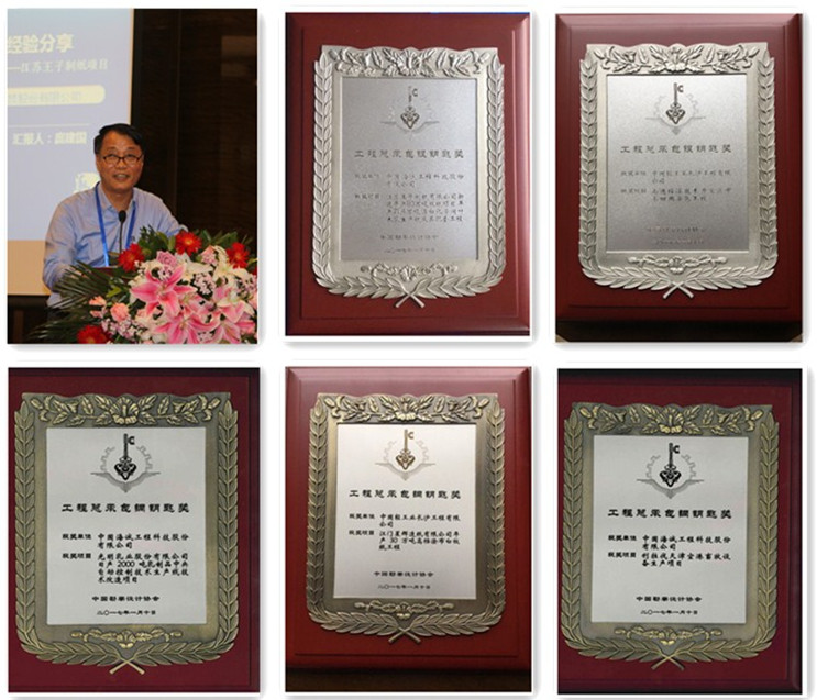 大會(huì)還對榮獲第八屆全國勘察設(shè)計(jì)行業(yè)優(yōu)秀工程項(xiàng)目管理和優(yōu)秀工程總承包項(xiàng)目的團(tuán)隊(duì)代表進(jìn)行了頒獎(jiǎng)。海誠股份共有5個(gè)項(xiàng)目獲獎(jiǎng)。其中:海誠股份承接的江蘇王子制紙有限公司新建年產(chǎn)80萬噸版紙項(xiàng)目 年產(chǎn)71.4萬噸漂白化學(xué)闊葉木漿生產(chǎn)線及其配套工程、長沙子公司承接的南通經(jīng)濟(jì)技術(shù)開發(fā)區(qū)中水回用示范工程項(xiàng)目被授予工程總承包銀鑰匙獎(jiǎng);海誠股份承接的光明乳業(yè)股份有限公司日產(chǎn)2000噸乳制品中央自動(dòng)控制技術(shù)生產(chǎn)線技術(shù)改造項(xiàng)目、利拉伐天津空港畜牧設(shè)備生產(chǎn)項(xiàng)目和長沙子公司承接的江門星輝造紙有限公司年產(chǎn)30萬噸高檔涂布白版紙工程被授予銅鑰匙獎(jiǎng)。王子項(xiàng)目項(xiàng)目經(jīng)理龐建國、光明項(xiàng)目項(xiàng)目經(jīng)理馮毅、天津利拉伐項(xiàng)目項(xiàng)目經(jīng)理呂偉良、黃自力,南通中水回用工程和江門星輝項(xiàng)目項(xiàng)目經(jīng)理胡正陽和吳鳴分別上臺領(lǐng)獎(jiǎng)。