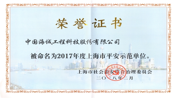 日前,上海市綜治委下發(fā)通知,對本市在平安創(chuàng)建活動中表現突出的單位進行表彰,我公司獲評“2017年度上海市平安示范單位”。