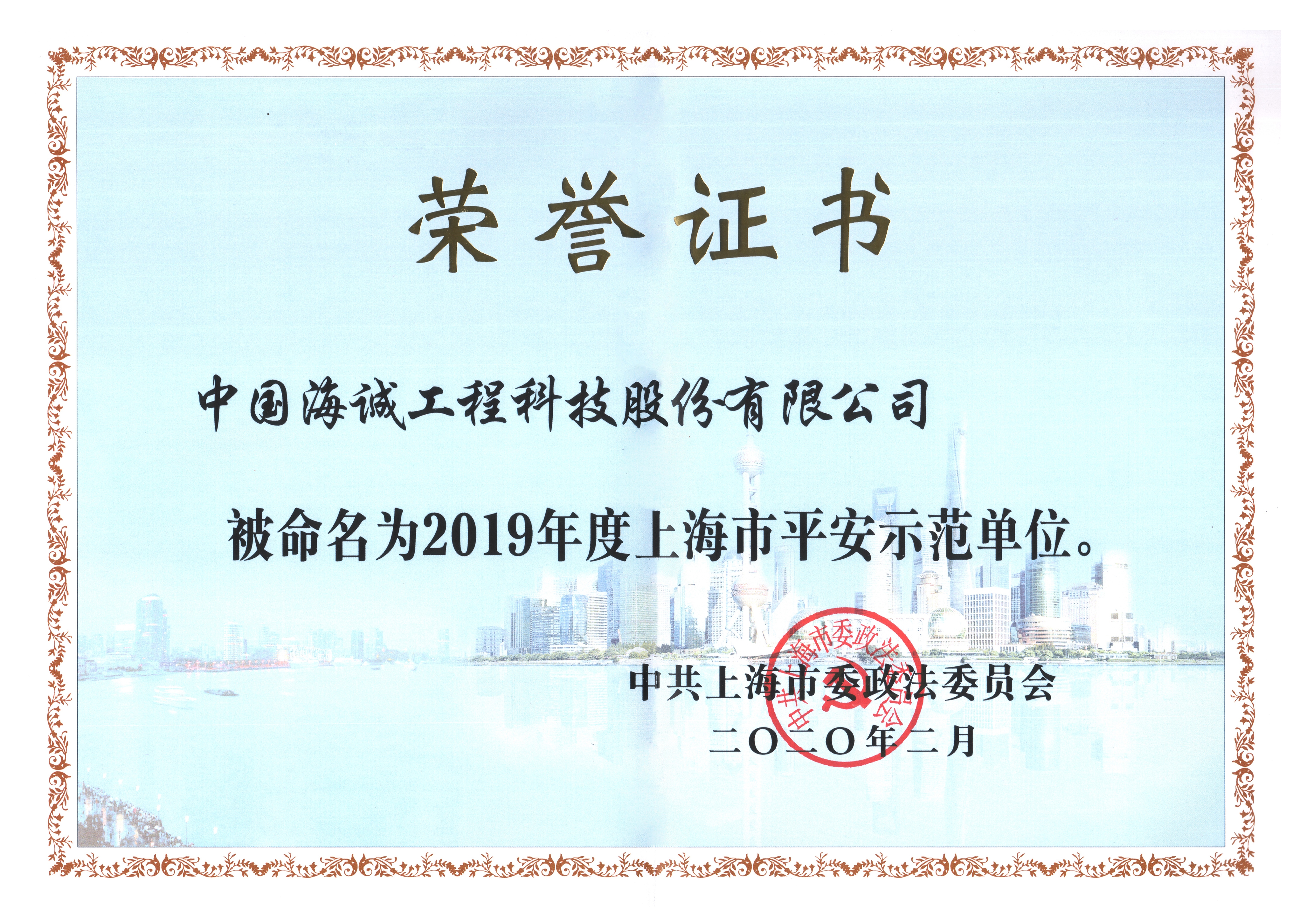 日前,公司被中共上海市委政法委員會(huì)授予2019年度上海市“平安示范單位”榮譽(yù)稱號(hào)。該獎(jiǎng)項(xiàng)旨在表彰企業(yè)為推進(jìn)安全保衛(wèi)工作,提升平安創(chuàng)建水平,牢固樹立安全責(zé)任意識(shí),積極營造安全穩(wěn)定的社會(huì)環(huán)境所做出的貢獻(xiàn)。