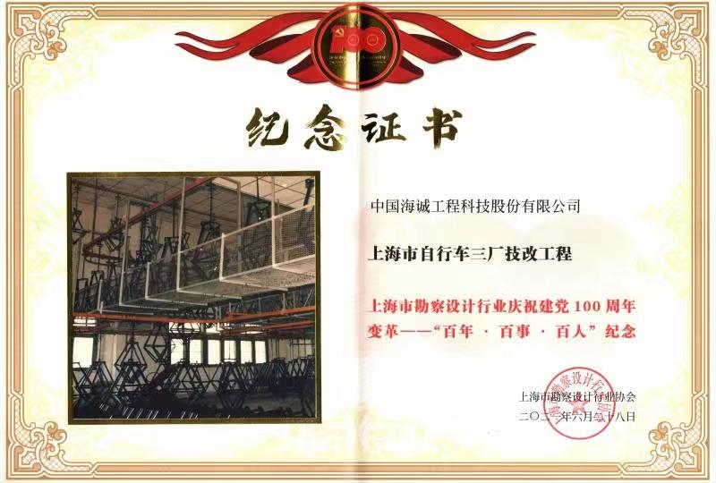 日前,公司在上海市勘察設(shè)計行業(yè)協(xié)會慶祝建黨100周年活動中榮獲“百年·百事·百人活動”紀(jì)念獎。