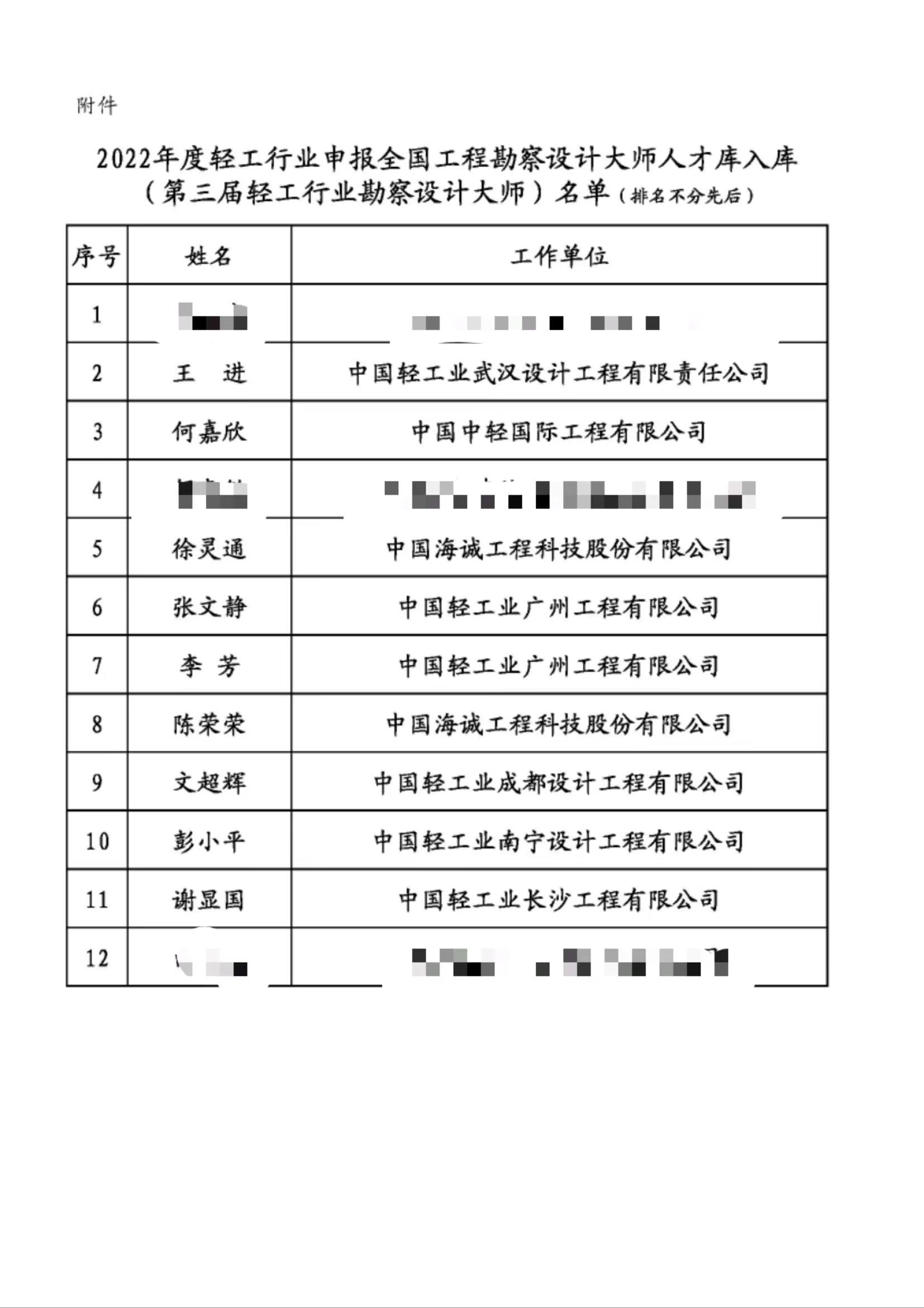 近日,中國輕工業(yè)工程建設協(xié)會發(fā)布“關于2022年度入選申報全國工程勘察設計大師人才庫(第三屆輕工行業(yè)勘察設計大師)名單的公告”, 12位全國輕工行業(yè)勘察設計大師名單中,中國海誠及所屬單位入選9位。
