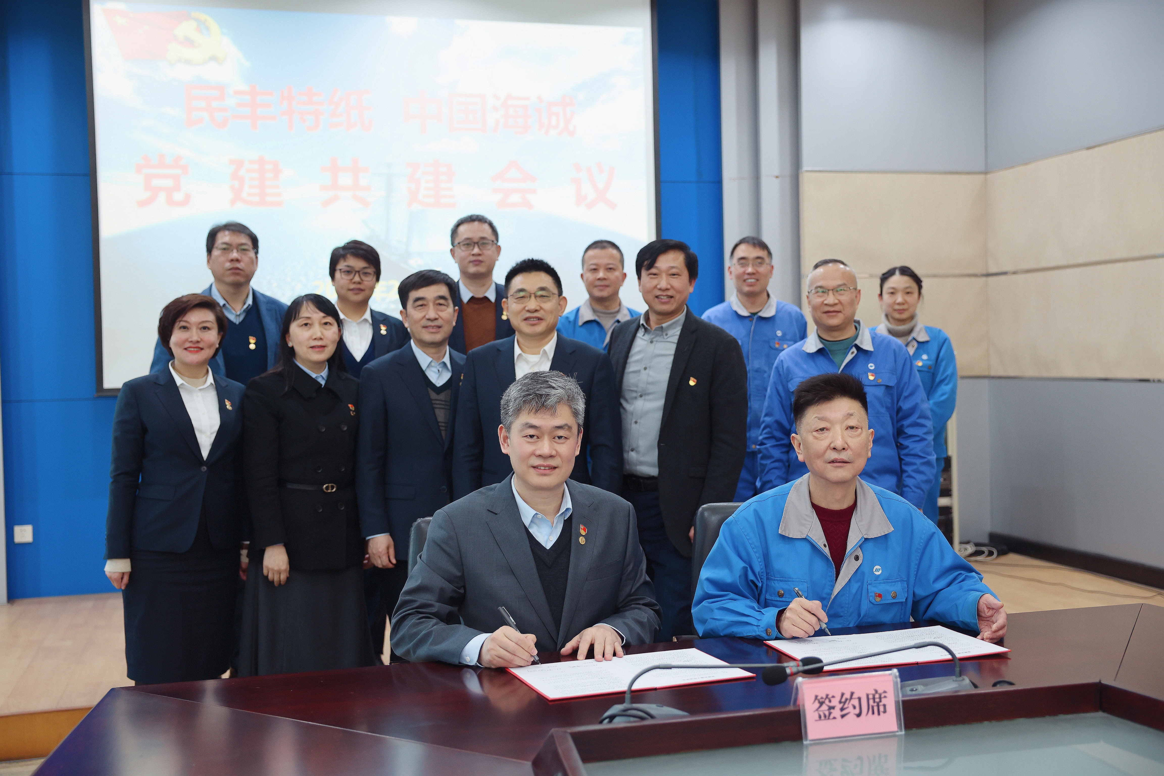 為深入貫徹黨的二十大精神,落實新時代黨的建設總要求,通過“黨建引領、共建聚力”促進黨建與業(yè)務深度融合,2023年2月27日,中國海誠黨委與民豐特紙黨委簽署黨建共建協(xié)議。民豐特紙黨委書記、董事長、總經(jīng)理曹繼華,黨委副書記、副總經(jīng)理陶偉強,黨委委員、副總經(jīng)理周家俊,黨委委員、紀委書記王洪祥;保利中輕副總經(jīng)理、中國海誠黨委書記、董事長趙國昂,黨委副書記、總裁陳榮榮,黨委副書記、紀委書記李義民出席簽約儀式。