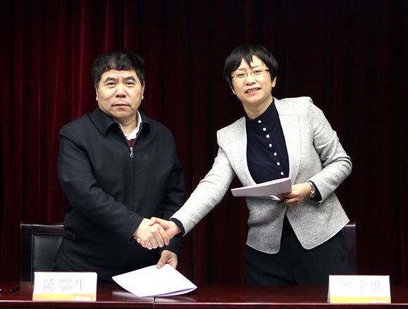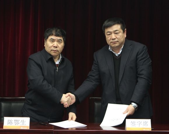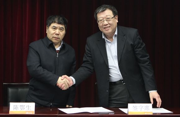 集團(tuán)黨委書記、董事長(zhǎng)陳鄂生與皮革院黨委書記楊承杰簽訂黨風(fēng)廉政建設(shè)責(zé)任書