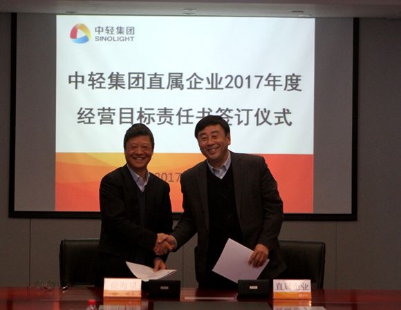 集團(tuán)公司總經(jīng)理俞海星與中輕控股總經(jīng)理錢小林簽訂經(jīng)營目標(biāo)責(zé)任書