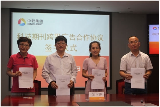 2017年8月16日,中輕集團(tuán)四家信息中心“科技期刊跨界廣告合作協(xié)議簽字儀式”在中輕大廈舉行。集團(tuán)公司副總經(jīng)理曹振雷、中國輕工業(yè)信息中心信息產(chǎn)業(yè)處處長劉丹靜出席簽字儀式并講話,四家信息中心負(fù)責(zé)人代表各中心簽字。