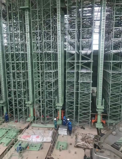 印尼亞太立體庫項目總貨位數(shù)為3792個,按貨位規(guī)格可存放紙卷2876噸,最大可存儲紙卷規(guī)格為直徑φ1200×幅寬1800mm,最大可儲存紙卷重量1500kg。6臺堆垛機負責紙卷的出入庫轉運,入庫能力110卷/小時,出庫能力110卷/小時,空載運行速度120m/min,負載運行速度100m/min。