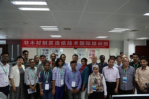 會后,葉冬柏一行在張萬順和郭建全陪同下參觀了造紙院,并與2019年科技部發(fā)展中國家“非木材制漿造紙技術國際培訓班”學員親切交流,對造紙院培訓班招生和組織工作給予了充分肯定并提出殷切希望。