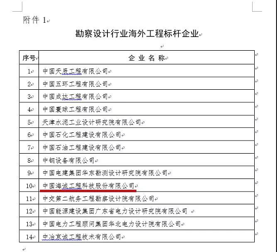 “海外工程標桿企業(yè)”是中國勘察設(shè)計協(xié)會為表彰在海外市場開拓中取得優(yōu)異成績的企業(yè)而設(shè)立,本次有14家企業(yè)入圍名錄,是從全國兩萬四千多家勘察設(shè)計單位中擇優(yōu)選出的。