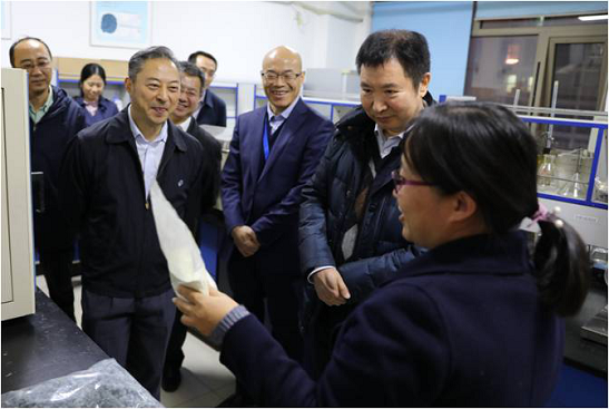 會(huì)后,曹國(guó)英一行在張萬(wàn)順和蔡木易等人的陪同下參觀了皮革院,并對(duì)皮革院清潔生產(chǎn)、資源化利用、功能性皮革材料等方面的研發(fā)成果給予充分肯定。