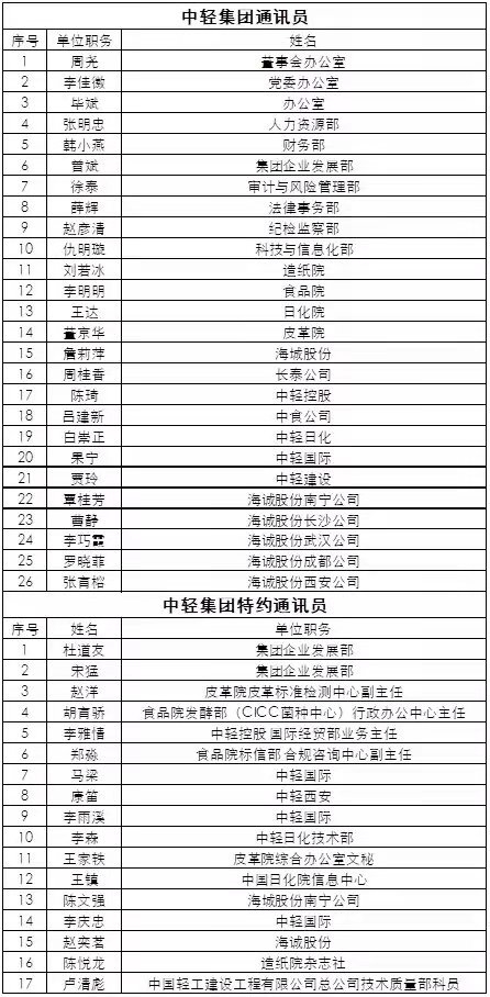 集團(tuán)通訊員和特約通訊員名單如下: