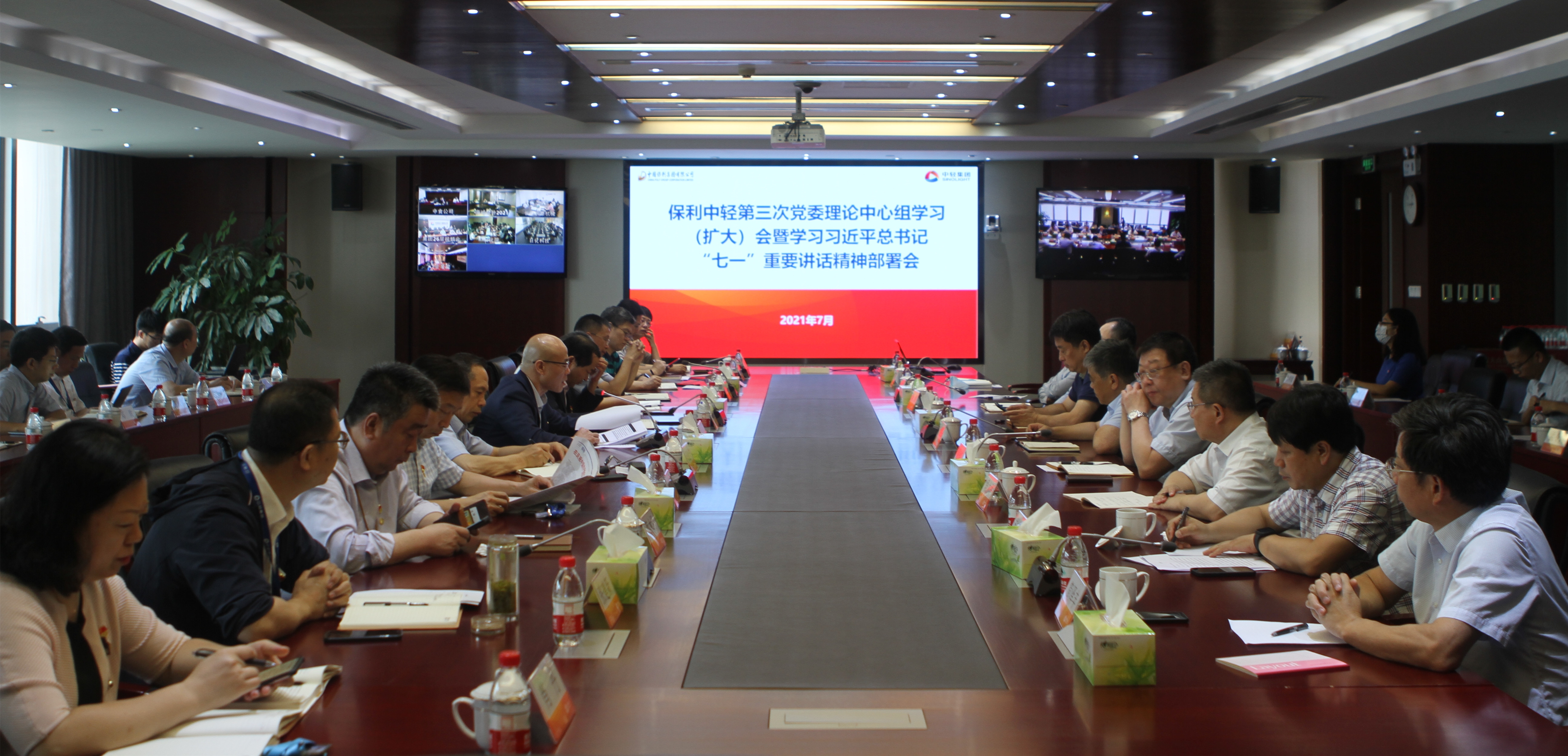 7月21日,保利中輕召開2021年度第三次黨委理論中心組學(xué)習(xí)(擴大)會暨學(xué)習(xí)習(xí)近平總書記“七一”重要講話精神部署會。會議的主題是:深入學(xué)習(xí)貫徹習(xí)近平總書記“七一”重要講話精神。會上,學(xué)習(xí)了習(xí)近平總書記“七一”重要講話、習(xí)近平總書記在青海調(diào)研時的重要講話以及《新征程面對面》理論讀本;傳達了《保利中輕深入學(xué)習(xí)貫徹習(xí)近平總書記“七一”重要講話精神實施方案》,對學(xué)習(xí)習(xí)近平總書記重要講話進行安排部署;傳達了保利集團“十四五”發(fā)展戰(zhàn)略與規(guī)劃細(xì)化明確思路。保利中輕黨委書記、董事長張萬順主持會議并作總結(jié)講話,領(lǐng)導(dǎo)班子成員、各子企業(yè)黨委書記圍繞學(xué)習(xí)貫徹習(xí)近平總書記“七一”重要講話精神交流學(xué)習(xí)體會。