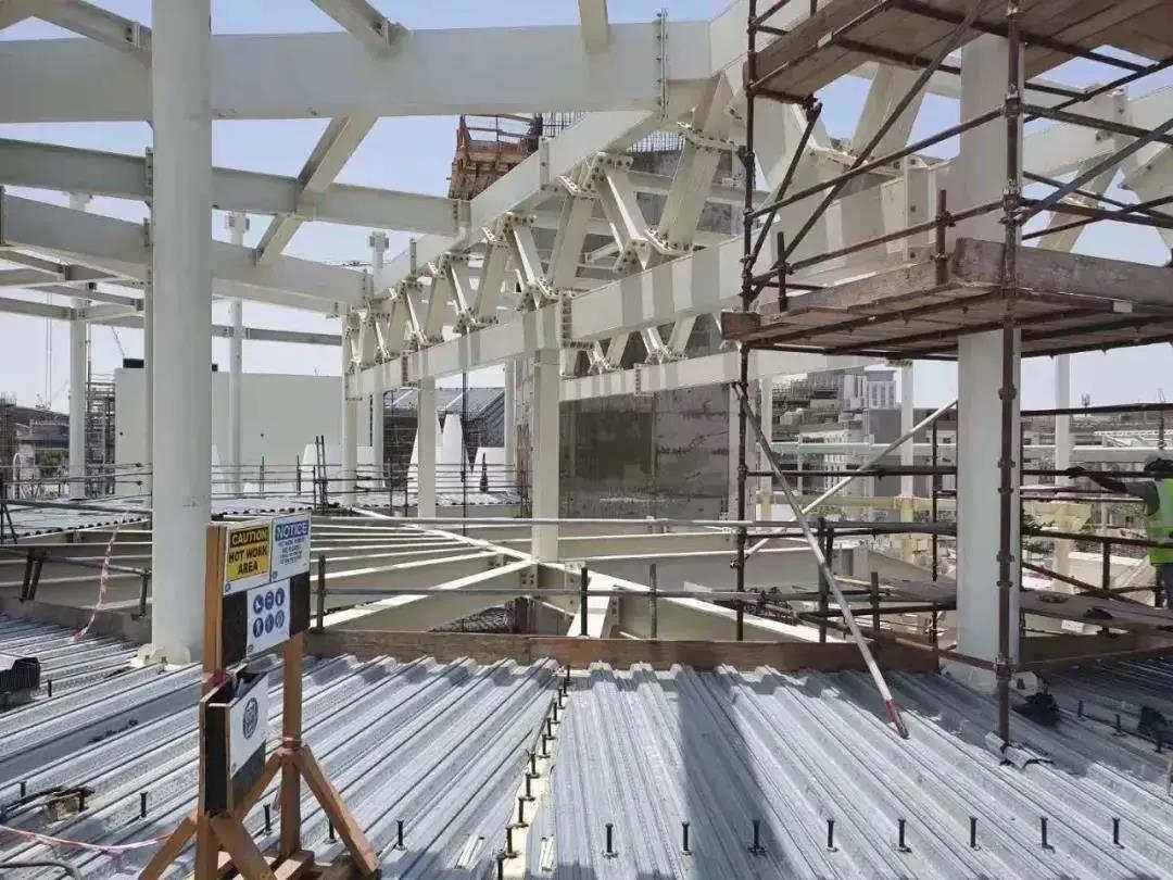 按照世博館建設(shè)相關(guān)要求與規(guī)定,海誠股份項(xiàng)目團(tuán)隊(duì)克服疫情、高溫,先后開展了深化設(shè)計(jì)、采購、施工和調(diào)試工作,面對復(fù)雜結(jié)構(gòu)及交叉作業(yè)施工,他們迎難而上,聚力攻堅(jiān),力保主體鋼結(jié)構(gòu)于2021年2月完工并移交,MEP機(jī)電于2021年7月完工。鋼結(jié)構(gòu)工程歷時約12個月,于2020年10月14日完成封頂,2021年2月全部完工并移交。