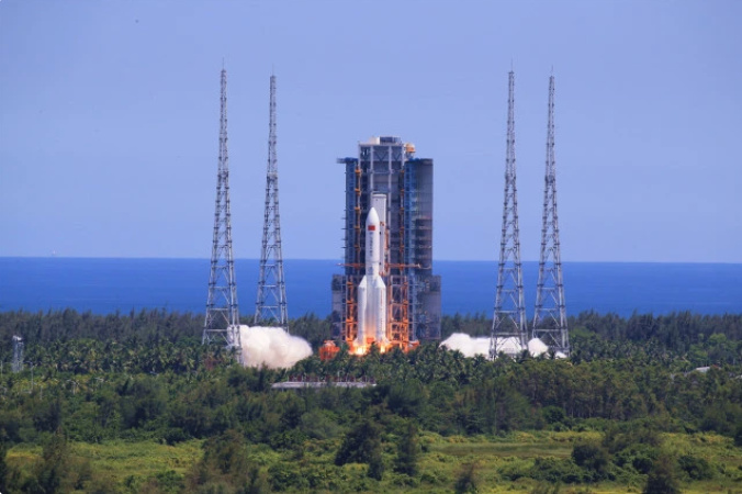 長(zhǎng)征五號(hào)B遙三運(yùn)載火箭搭載中國(guó)空間站問天實(shí)驗(yàn)艙點(diǎn)火發(fā)射(央廣網(wǎng))