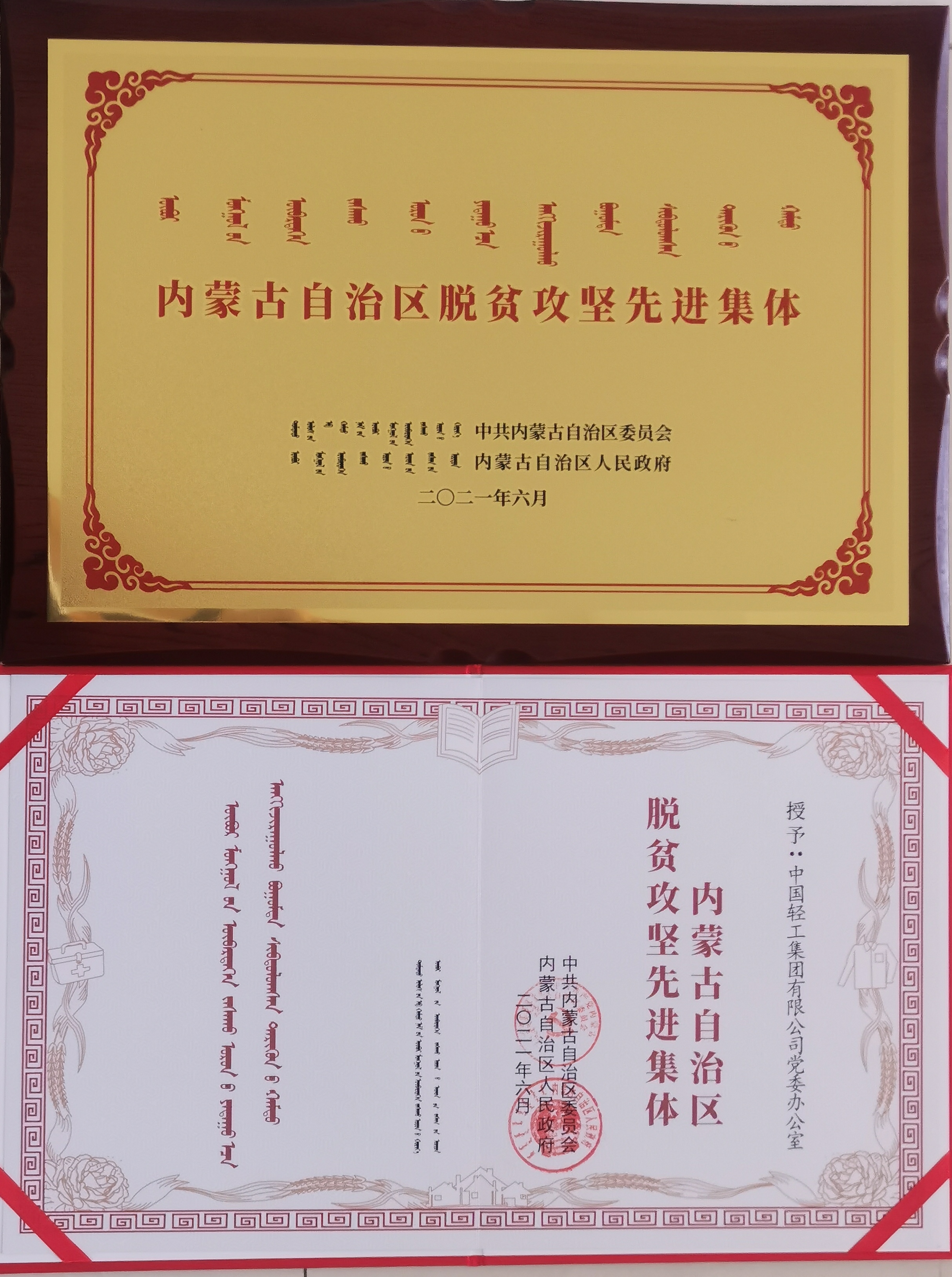 為表彰保利中輕黨委在喀喇沁旗脫貧攻堅(jiān)中的突出貢獻(xiàn),2021年內(nèi)蒙古自治區(qū)黨委政府授予保利中輕黨委辦公室“內(nèi)蒙古自治區(qū)脫貧攻堅(jiān)先進(jìn)集體”稱號(hào),其中掛職干部王軍輝榮獲2021年度“喀喇沁旗優(yōu)秀共產(chǎn)黨員”,劉為在2021年公務(wù)員考核中評(píng)為“赤峰市優(yōu)秀公務(wù)員”。