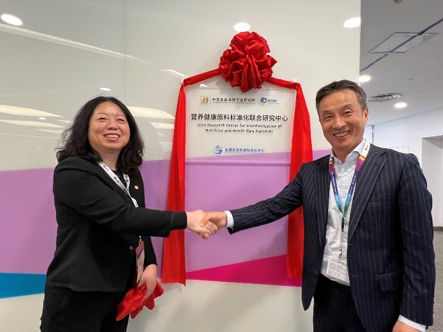 簽約儀式后,肖丹帶隊到帝斯曼(中國)總部和研發(fā)中心進(jìn)行考察對接,參觀帝斯曼中心實驗室,并為“營養(yǎng)健康原料標(biāo)準(zhǔn)化聯(lián)合研究中心”揭牌。