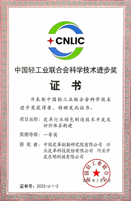 該項(xiàng)目針對制革行業(yè)生產(chǎn)過程中產(chǎn)生的含鉻固廢開發(fā)資源化利用技術(shù)及成套設(shè)備,實(shí)現(xiàn)固廢的高值化利用,有效降低制革企業(yè)含鉻危廢排放量,相關(guān)技術(shù)及成套設(shè)備已實(shí)現(xiàn)工業(yè)化應(yīng)用?;谥聘镄袠I(yè)的特點(diǎn),構(gòu)建制革行業(yè)的綠色制造評價(jià)體系,為皮革行業(yè)實(shí)現(xiàn)國家的雙碳戰(zhàn)略提供理論和方法依據(jù),有效提升制革行業(yè)綠色制造水平。