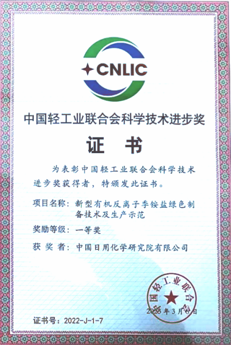 該項(xiàng)目以綠色化工原料碳酸二甲酯替代傳統(tǒng)有毒有害季銨化劑,成功開發(fā)清潔綠色的季銨鹽制備工藝技術(shù),并以此為基礎(chǔ),合成構(gòu)建多種結(jié)構(gòu)有機(jī)反離子季銨鹽,推動(dòng)季銨鹽產(chǎn)品多樣性發(fā)展、新型制備工藝開發(fā)和季銨鹽高效高值化利用,在醫(yī)藥、電子等特殊領(lǐng)域具有極大應(yīng)用價(jià)值。