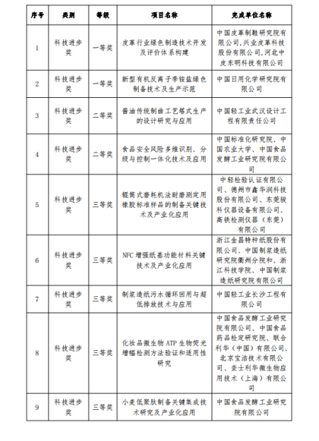 保利中輕獲得2022年中國輕工業(yè)聯(lián)合會(huì)科技獎(jiǎng)明細(xì)