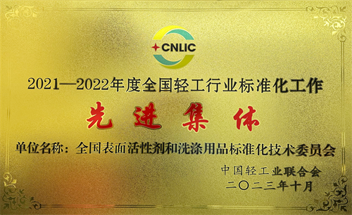 中國日用化學(xué)研究院作為秘書處承擔(dān)單位運(yùn)營的全國表面活性劑和洗滌用品標(biāo)準(zhǔn)化技術(shù)委員會(huì)榮獲“2021-2022年度全國輕工行業(yè)標(biāo)準(zhǔn)化工作先進(jìn)集體”稱號(hào)。
