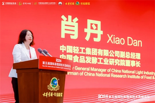 肖丹首先向出席大會的嘉賓表示熱烈歡迎,向此次會議承辦方安徽古井集團有限責任公司的大力支持表示誠摯謝意。她表示,蒸餾酒產業(yè)憑借其深厚的歷史底蘊和廣泛的市場需求,已成為現代經濟發(fā)展的重要產業(yè)之一。聚焦“創(chuàng)新、質優(yōu)”的新質生產力成為白酒行業(yè)高質量發(fā)展的新動能。中國食品院將與行業(yè)企業(yè)一道,共同推動傳統釀酒行業(yè)向數字化、智能化、綠色化轉型升級,助力國際蒸餾酒產業(yè)高質量發(fā)展。