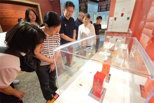參觀中,大家認(rèn)真聆聽講解,仔細(xì)觀摩展品。一枚枚精美別致的印章,將新材料與篆刻文化完美融合,玻璃微珠、先進(jìn)陶瓷、復(fù)合材料、特種水泥、碲化鎘發(fā)電玻璃等新材料印章讓人應(yīng)接不暇,生動(dòng)展現(xiàn)了北京老城永定門到鐘鼓樓15個(gè)核心遺產(chǎn)景觀、建筑布局和歷史文化價(jià)值。在感受大眾篆刻藝術(shù)無窮魅力的同時(shí),仿佛置身于北京中軸線氣勢恢宏、秩序井然的城市建筑群中,深刻感受北京中軸線作為城市文化脊梁的重要意義。