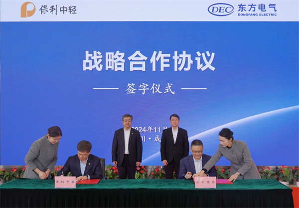 11月19日,保利中輕與東方電氣集團(tuán)國(guó)際合作有限公司(簡(jiǎn)稱“東方國(guó)際”)在蓉簽署戰(zhàn)略合作協(xié)議。保利集團(tuán)總經(jīng)理助理,保利中輕黨委書記、董事長(zhǎng)安勝杰;東方電氣股份有限公司副總裁,東方國(guó)際黨委書記、董事長(zhǎng)李建華出席儀式見證簽約。