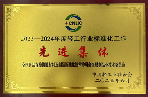中國食品發(fā)酵工業(yè)研究院承擔秘書處單位的全國食品直接接觸材料及制品標準化技術委員會金屬制品分技術委員會獲得023—2024年度輕工行業(yè)標準化工作先進集體”榮譽稱號。