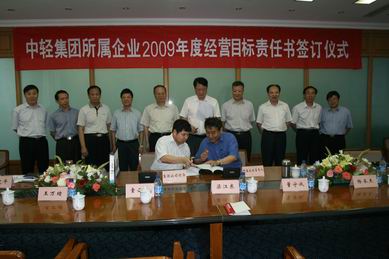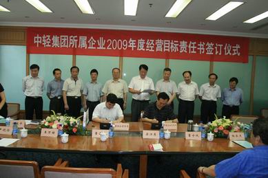 7月16日,中國輕工集團公司所屬二級企業(yè)2009年經(jīng)營目標(biāo)責(zé)任書簽訂儀式在集團總部舉行。集團公司領(lǐng)導(dǎo)、集團公司部門負責(zé)人、二級企業(yè)負責(zé)人出席了儀式。儀式由集團公司董事長陳學(xué)忠主持,陳鄂生總經(jīng)理代表集團公司與所屬10家二級企業(yè)負責(zé)人簽訂了2009年度經(jīng)營目標(biāo)責(zé)任書。陳學(xué)忠董事長、陳鄂生總經(jīng)理先后在簽字儀式上講話,要求各二級企業(yè)要認真分析金融危機對企業(yè)帶來的影響,找準(zhǔn)問題,制定切實可行的辦法,力保全年任務(wù)的完成,為重組后新集團的快速發(fā)展打好基礎(chǔ)。