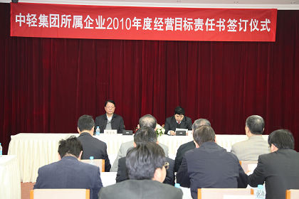 中國輕工集團公司所屬企業(yè)2010年度經(jīng)營目標責(zé)任書簽訂儀式于3月30日在集團總部舉行,集團公司領(lǐng)導(dǎo)、集團公司部門負責(zé)人、二級企業(yè)主要負責(zé)人出席了儀式。