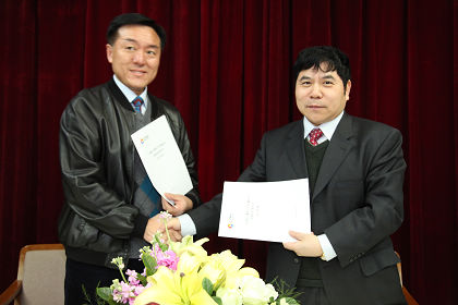 陳鄂生總經(jīng)理與皮革院院長楊承杰簽訂經(jīng)營目標責(zé)任書