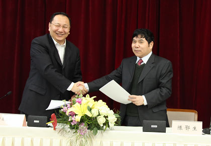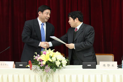 陳鄂生總經(jīng)理與日化院院長王萬緒簽訂經(jīng)營目標責(zé)任書