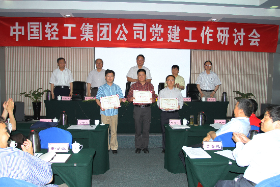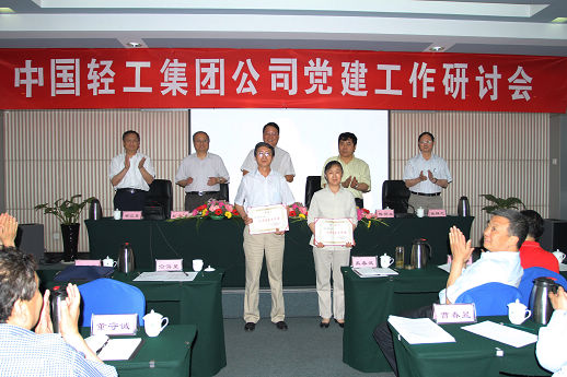 5月27--28日,中國(guó)輕工集團(tuán)公司召開了黨建工作研討會(huì),會(huì)議深入貫徹落實(shí)黨的十七大、十七屆四中全會(huì)和全國(guó)國(guó)有企業(yè)黨建工作會(huì)議精神,深入貫徹落實(shí)科學(xué)發(fā)展觀,總結(jié)集團(tuán)公司重組以來黨建工作情況,研究探討加強(qiáng)和改進(jìn)集團(tuán)公司黨建工作的意見和措施,安排部署當(dāng)前和今后一個(gè)時(shí)期黨建工作,表彰集團(tuán)公司先進(jìn)基層黨組織、優(yōu)秀共產(chǎn)黨員和優(yōu)秀黨務(wù)工作者。集團(tuán)公司黨委書記、董事長(zhǎng)陳學(xué)忠、總經(jīng)理陳鄂生、黨委副書記趙海建、副董事長(zhǎng)張靜之、黨委副書記、紀(jì)委書記梁江東出席會(huì)議并在主席臺(tái)就座,集團(tuán)公司在家的黨政領(lǐng)導(dǎo)班子成員禹春武、俞海星、馬思一、任建平、閻寶成、郭建全、童云翔,集團(tuán)公司各所屬企業(yè)黨政負(fù)責(zé)同志及黨辦主任共計(jì)50余人出席了會(huì)議。