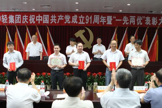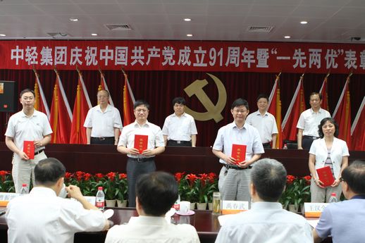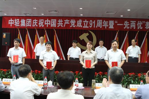 2012年6月29日下午,中輕集團慶祝中國共產(chǎn)黨成立91周年暨“一先兩優(yōu)”表彰大會在集團公司新的總部辦公大樓——中輕大廈隆重召開。會議隆重表彰了集團公司先進基層黨組織、優(yōu)秀共產(chǎn)黨員、優(yōu)秀黨務(wù)工作者和集團公司2009-2011年度創(chuàng)建“四好”領(lǐng)導(dǎo)班子先進集體。集團公司黨委書記、董事長陳鄂生在會上作了重要講話。集團公司總經(jīng)理俞海星主持會議。