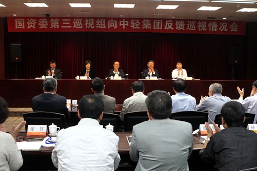 韓修國(guó)在通報(bào)巡視情況時(shí)指出,根據(jù)國(guó)資委巡視工作領(lǐng)導(dǎo)小組的統(tǒng)一部署,2015年7月1日至8月19日,國(guó)資委第三巡視組對(duì)中輕集團(tuán)進(jìn)行了巡視。巡視期間,巡視組廣泛開展個(gè)別談話,受理群眾來信來訪,調(diào)閱有關(guān)文件資料,深入了解情況,進(jìn)行專項(xiàng)調(diào)查,順利完成了巡視任務(wù)。國(guó)資委巡視工作領(lǐng)導(dǎo)小組聽取了巡視情況匯報(bào),對(duì)中輕集團(tuán)整改落實(shí)作出了重要指示。