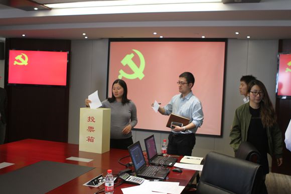 大會(huì)在雄壯的《國歌》聲中開始,會(huì)議審議通過了中輕集團(tuán)總部黨總支委員會(huì)選舉辦法,通過了大會(huì)監(jiān)票人、計(jì)票人。經(jīng)全體黨員投票選舉,馬思一、李義民、楊建軍、陳鐳、羅杰(按姓氏筆畫排序)等五名同志當(dāng)選為新一屆總支委委員。