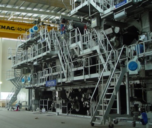 年產(chǎn)35萬噸牛皮箱板紙工程,主機(jī)由德國VOITH公司提供,該機(jī)是目前世界上同類型板紙機(jī)運(yùn)行車速最快的。建設(shè)內(nèi)容有廢紙?zhí)幚?、造紙完成及輔助設(shè)施等。