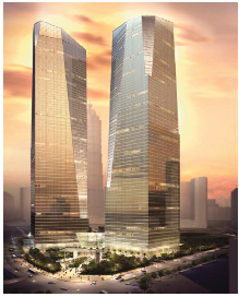 上海國際金融中心項(xiàng)目是一個(gè)多功能的高層公共建筑群體,由共同坐落在同一群體上的(三個(gè)高度不一的高層塔樓組成)。該項(xiàng)目由位于東側(cè)的楊高路和西側(cè)的竹林路兩條主干道之間,南側(cè)毗鄰張家浜河道。該建筑地下四層,三棟塔樓,32層,高度200米。塔樓組合由位于7至9層的步行天橋相互連接,7至8層的天橋區(qū)和與之對應(yīng)的塔樓區(qū)域?qū)⒆鳛楣灿猛?,如博物館和多功能廳;該塔樓組合也將通過地下四層的區(qū)域相互連通。B1和B2包括一個(gè)劇場,餐廳,雇員\員工餐廳,包括籃球場的健身區(qū)域以及機(jī)電設(shè)備空間。B5和B3層主要用作整個(gè)建筑綜合體的停車庫區(qū)域。該項(xiàng)目地上總建筑面積25萬平方米,地下25萬平方米。